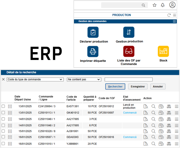 Implémentation d'ERP (Enterprise Resource Planning ou Progiciel de Gestion Intégrée). Logiciel qui permet de gérer l'ensemble des processus d'une entreprise en intégrant toutes les fonctions (gestion des commandes, gestion de production, gestion des stocks, comptabilité, gestion des ressources humaines, ...) dans un système unique. Il permet de centraliser et de partager les informations entre les différents services de l'entreprise, ce qui facilite la coordination et la prise de décision.