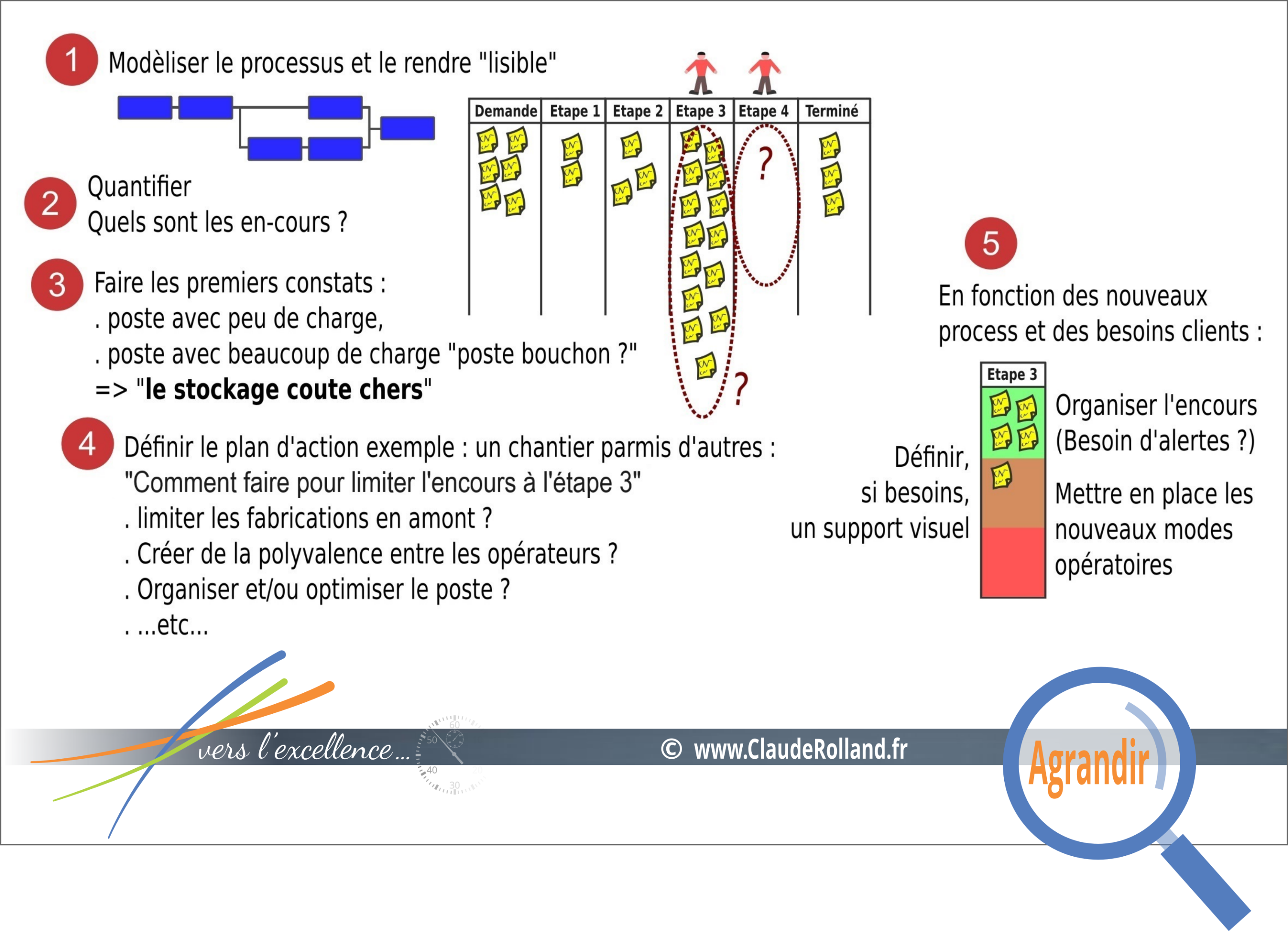 Instaurer un système d'avancement pour déclencher le travail en fonction de la demande. Prioriser les éléments en fonction de leur intéret (coûts, délais, ...). Gérer les exceptions et les urgences.