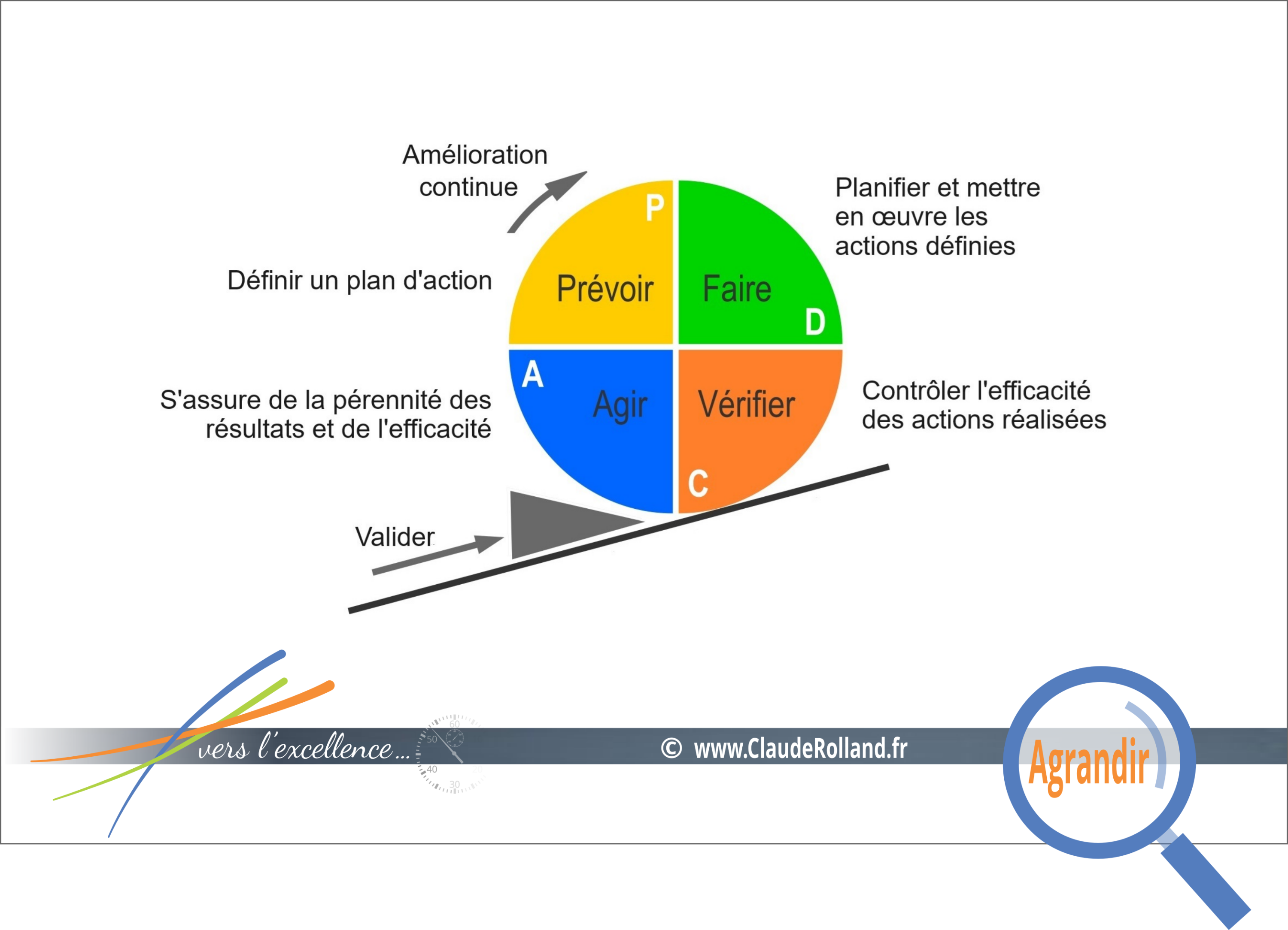 PDCA est une méthode cyclique d'amélioration continue utilisée dans les entreprises pour améliorer les processus et les produits. Elle est également connue sous le nom de Roue de Deming.